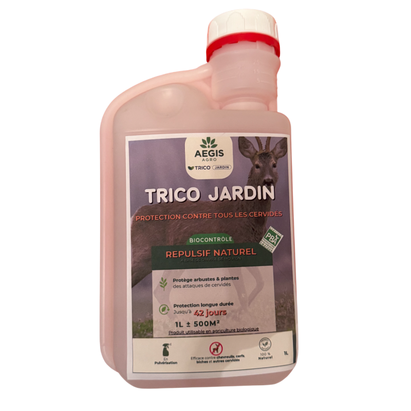 Ajouter à mes favoris Répulsif TRICO 1 litre jardin ref 6773-1 Répulsif TRICO 1 L Jardin : protection naturelle et durable des arbres et jeunes plants contre les cervidés, simple d’usage et efficace sur toutes les plantations sensibles. Disponibilité janvier 2026 En savoir plus Précommandez M'alerter lorsque le produit sera en stock OK 106,80 € TTC89,00 € HT Quantité Ajouter au panier Description et Caractéristiques Répulsif TRICO 1 L Jardin : protection naturelle et durable des arbres et jeunes plants contre les cervidés, simple d’usage et efficace sur toutes les plantations sensibles. Disponibilité janvier 2026 Répulsif TRICO 1 L Jardin Protection performante contre les cervidés Le TRICO 1 litre Jardin est un répulsif professionnel destiné à protéger efficacement les arbres, arbustes, jeunes plants forestiers et végétaux de jardin contre les dégâts causés par les cervidés tels que chevreuils, cerfs et biches. Sa formulation à base de graisse de mouton crée une barrière olfactive et gustative durable, parfaitement adaptée aux environnements naturels, aux zones forestières et aux plantations exposées. Caractéristiques et fonctionnement Le produit se présente sous forme de concentré liquide prêt à diluer. Sa matière active forme une fine pellicule protectrice sur les jeunes pousses, ce qui empêche les animaux de consommer les feuilles et bourgeons. Selon les besoins, il peut être appliqué pur sur les plants isolés ou dilué pour traiter de plus grandes surfaces. La tenue du produit est renforcée par son excellente adhérence, garantissant une protection durable même en conditions extérieures. Le TRICO est recommandé pour les jeunes plantations forestières, les pépinières, les haies, les arbres d’ornement et toute culture sensible au broutage. Il s’emploie en prévention lors de la reprise végétative, après plantation ou dès l’apparition des premières traces de morsures. TRICO offre une solution naturelle, sûre et redoutablement efficace pour réduire les dommages liés aux cervidés. Sa double action répulsive limite les intrusions tout en respectant les plantes et l’écosystème. Conçu pour les usages professionnels comme pour les particuliers, il garantit une protection longue durée tout en facilitant la gestion des zones forestières ou des jardins soumis à une forte pression de gibier. Sa mise en œuvre simple, sans équipement spécialisé, permet un traitement rapide et régulier des plantations, assurant une croissance préservée et un investissement protégé. Conseils d’application Appliquer sur un feuillage sec en veillant à bien recouvrir les jeunes pousses. Laisser sécher pour une adhérence optimale. En conditions de forte pression de gibier, renouveler le traitement après quelques semaines. Son efficacité se manifeste dès la première application et contribue à instaurer une véritable habitude d’évitement chez les cervidés. Chasse-tir, nature et environnement Phytosanitaire Répulsifs gibier Nos clients ont testé et apprécié ! Nous vous conseillons également... Disques à charbon pour Wayfarer lot de 3 Ref : 7244D 23,60 € HT PFANNER - Veste de traque Gladiator Outdoor kaki Ref : 5763 277,00 € HT AEDES PROTECTA - Sac de rechange pour collier anti-chenilles processionnaires Ref : 6395S 13,00 € HT SOMLYS - Pantalon de traque EVO 531 ORANGE Ref : 6357O 69,90 € HT Savon noir Marius Fabre bidon 1 litre Ref : 6703-1 8,60 € HT MEINDL - Chaussures de chasse Literock GTX Ref : 6291 182,00 € HT sac de tir mirador Ref : 5593 22,60 € HT BUSHNELL - Longue vue ENGAGE DX 20-60x80 Ref : 7467 825,00 € HT LEDLENSER - Lampe frontale rechargeable H15R CORE Ref : 6615 156,40 € HT Etui pour ruban vinyl Ref : 4485A 36,80 € HT Caméra sans fil Reolink GO G770 4G avec panneau solaire Ref : 7527 259,00 € HT GERBER - Pince Center Drive Gerber Ref : 6258 136,40 € HT NORTH WAYS - Polo de travail GAULT kaki Ref : 7373 28,60 € HT Promo -15% MEINDL - Chaussures Air Revolution Alpin Ref : 6601 254,15 € HT 299,00 € HT FRANCITAL - Pantalon de traque CERBERE Ref : 7074 329,00 € HT Carte tire-tique Ref : 6174 1,40 € HT Répulsif TRICO 1 L Jardin : protection naturelle et durable des arbres et jeunes plants contre les cervidés, simple d’usage et efficace sur toutes les plantations sensibles. Disponibilité janvier 2026