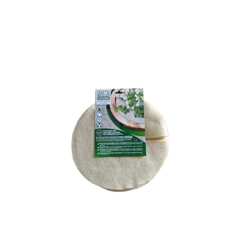 Ajouter à mes favoris Disques de paillage en laine de mouton lot de 2 x 40 cm ref 7343-40 Paillage de protection en laine de mouton produit 100% en France. Laine issue des éleveurs de Roquefort qui la transforme en isolant et feutre de paillage pour les plantations. En savoir plus En stock 8,28 € TTC6,90 € HT Quantité Ajouter au panier Description et Caractéristiques Paillage de protection en laine de mouton produit 100% en France. Laine issue des éleveurs de Roquefort qui la transforme en isolant et feutre de paillage pour les plantations. Produit naturel, écologique et biodégradable Fabriqué selon la technique du cardage/aiguilletage avec des laines issues d'élevages de moutons Aveyronnais. Il est entièrement naturel et représente une solution facile à mettre en place et respectueuse de l'environnement aux nombreuses qualités : protection des plantations contre les éléments : grâce au pouvoir isolant de la kératine qu'il contient, le feutre de laine est très efficace contre le gel et contre les animaux trop gourmands économie d'eau : la laine a la capacité de retenir jusqu'à 30% de son poids en eau et de la restituer au fur et à mesure tel un goutte à goutte réduction de la photo synthèse : en réduisant l'exposition à la lumière, la toile de paillage emp^che le processus de photosynthèse et limite donc la pousse des mauvaises herbes et donc l'utilisation de désherbant Efficacité estimée entre 12 et 48 mois selon le grammage et l'utilisation Nombreuses applications : espaces verts, viticulture, vergers, potagers, horticulture, plants en pots Propriétés Barrière naturelle contre les animaux grâce à la kératine Conservation de l'humidité (30% de son poids en eau) Réduction de la photosynthèse Alimentation naturelle des plantes Conseils pour la poste A poser avant ou après la plantation A poser sur un sol propre dépourvu d'ancienne plantation ou de déchet Facile à découper avec des ciseaux Agrafer sur les bords (2 agrafes au m2) Taille 40x40cm Fiche technique Solena Accessoires Tuteur et gaine de protection Nouveautés Nos clients ont testé et apprécié ! Nous vous conseillons également... ZIMMER - Nichoir mangeoire EVIDENCE Ref : 7369 24,90 € HT Guide du piégeage photographique animalier Ref : 7384 14,21 € HT CAO OUTDOOR - Bâton de marche en bois 110 cm Ref : 7428 23,10 € HT METRICA - Hygromètre avec vision thermique FLIR TG165X Ref : 7315 439,00 € HT PETZL - Mousqueton Freino Z Triact-Lock Ref : 7349 39,00 € HT ÉDITIONS QUAE - La vie cachée des sols Ref : 7302 21,80 € HT PETZL - Corde Control orange 12.5mm 1 épissure Ref : 7356O 170,00 € HT Poulie frein DOWN RIGGER Rock-Exotica Ref : 7562 279,00 € HT SIP PROTECTION - Surpantalon 3FS2C3 Ref : 7378 598,00 € HT NORTH WAYS - Polo uni manches courtes GAULT terracotta Ref : 7373T 28,60 € HT STELZNER - Hydro 2000 Ref : 7309 499,00 € HT SOMLYS - Pantalon MAQUISARD II T580N Ref : 7395 37,80 € HT TALIAPLAST - Pelle de bord 700 mm Ref : 7337 22,50 € HT IDF - Connaitre, comprendre et protéger la forêt Ref : 7366 20,85 € HT MEINDL - Chaussures hiver Gastein femme GTX Ref : 7420L 265,00 € HT LEBORGNE - Coin vrillé petit modèle Ref : 7334 24,40 € HT Paillage de protection en laine de mouton produit 100% en France. Laine issue des éleveurs de Roquefort qui la transforme en isolant et feutre de paillage pour les plantations.