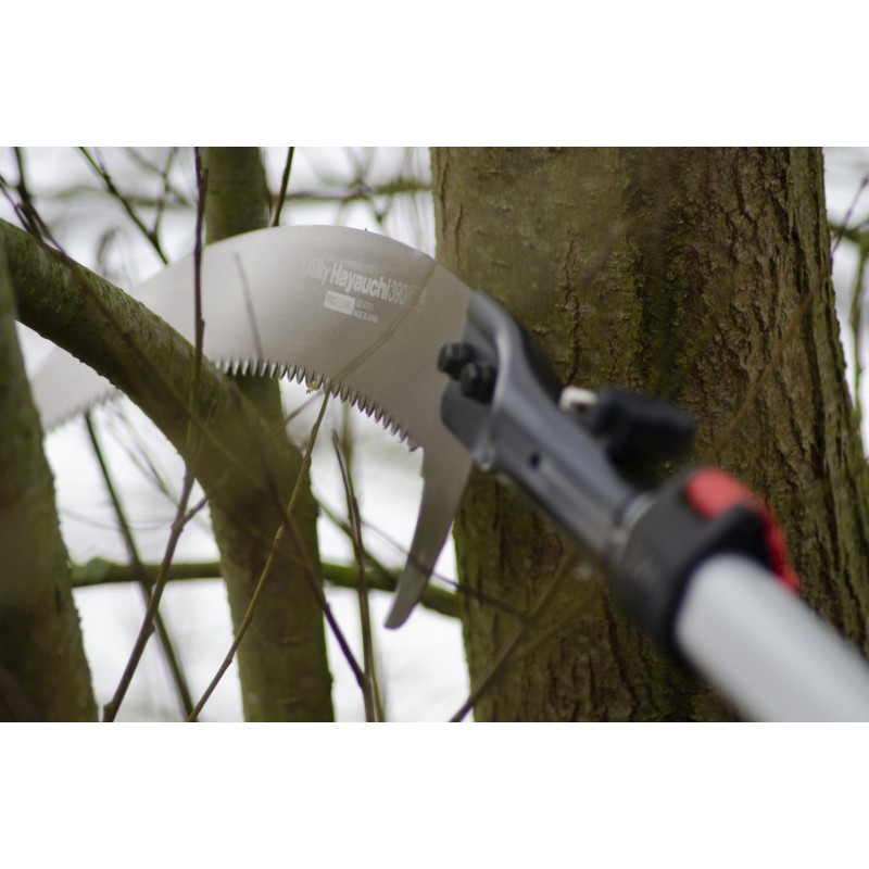 Ajouter à mes favoris Perche Silky Hayauchi 6,30 m avec scie ref 4441-6.3 Perche télescopique de 6,30 m avec scie courbée de 390 mm, idéale pour l'élagage professionnel en hauteur. En savoir plus En stock 367,20 € TTC306,00 € HT Quantité Ajouter au panier Obtenez + 3.06€ de cashback Description et Caractéristiques Perche télescopique de 6,30 m avec scie courbée de 390 mm, idéale pour l'élagage professionnel en hauteur. Perche Silky Hayauchi 6,30 m avec scie : l'outil indispensable pour les professionnels de la forêt La perche Silky Hayauchi de 6,30 mètres avec scie est conçue pour répondre aux exigences des professionnels du bois et de la forêt. Cet outil de haute qualité facilite l'élagage en hauteur en toute sécurité, sans nécessiter d'échelle. Caractéristiques techniques : Longueur maximale : 6,30 mètres, idéale pour atteindre les branches élevées. Lame : scie courbée de 390 mm avec dents affûtées pour une coupe précise et efficace. Matériau : perche en aluminium léger et robuste, offrant une manipulation aisée. Sections télescopiques : trois sections ajustables avec verrous sécurisés pour une longueur adaptée à chaque tâche. Poignée antidérapante : assure une prise en main confortable et sécurisée. Pourquoi choisir la perche Silky Hayauchi 6,30 m avec scie ? Performance supérieure : la lame de scie courbée permet des coupes nettes et rapides, réduisant l'effort nécessaire. Sécurité accrue : la longueur de la perche élimine le besoin d'échelles, minimisant les risques de chutes lors des travaux en hauteur. Durabilité : les matériaux de haute qualité garantissent une longue durée de vie, même dans des conditions d'utilisation intensives. Polyvalence : adaptée à diverses tâches d'élagage, de la taille des arbres fruitiers à l'entretien des espaces verts urbains. Avantages pour les professionnels : Efficacité : augmente la productivité en permettant d'atteindre et de couper des branches difficiles d'accès sans équipement supplémentaire. Confort d'utilisation : le design ergonomique réduit la fatigue lors des sessions de travail prolongées. Transport facilité : la perche télescopique se rétracte pour un transport et un stockage aisés. En investissant dans la perche Silky Hayauchi 6,30 m avec scie, les professionnels du secteur forestier et de l'entretien paysager disposent d'un outil fiable et performant pour mener à bien leurs missions d'élagage en toute sécurité. Poids 2.9 kg Longueur totale 6.30 m Longueur lame 39 cm Taille et coupe Perches d'élagage perche à élagueur japonaise SILK Nos clients ont testé et apprécié ! Nous vous conseillons également... SILKY - Lame de rechange Silky Hayauchi Ref : 4441A 71,00 € HT METALLO - Echenilloir METALLO pour SILKY Ref : 4443 112,00 € HT SILKY - Scie Gomtaro 300-8 Ref : 4445 54,00 € HT ARS - Nettoyant ARS GO-1 Ref : 4476 14,40 € HT ARS - endcap SP 119 Ref : SP 119 4,00 € HT ARS - Adaptateur jg-4 ARS Ref : JG4 12,10 € HT Promo -30% Douille pour scie 2134 Ref : 2134B 22,40 € HT 32,00 € HT ARS - Perche téléscopique 5.50m sans scie Ref : 3352P 200,00 € HT ARS - 1er élement perche 3352-4.5 Ref : SP 112 101,20 € HT ARS - 2e élement pour perche 3352-4.5 Ref : SP 116 56,40 € HT BERGER - catapulte de lancer Ref : 6236 176,00 € HT ARS - plastic guide pour perche 3132 Ref : SP 111 4,10 € HT SILKY - shaking-proof stopper set large Ref : KZSI1773954 16,80 € HT Promo -20% BERGER - Crochet d'abattage pour perche berger Ref : 6351 207,20 € HT 259,00 € HT SILKY - Perche Silky Hayauchi 4,90m avec scie Ref : 4441-5.4 242,00 € HT METALLO - Echenilloir METALLO pour perche ARS 3352 Ref : 4488 83,90 € HT ARS - SP39 Ref : SP39 1,15 € HT ARS - endcap SP 121 Ref : SP 121 0,80 € HT ARS - stopper set for B-PIPE perche ARS 3352-4.5 Ref : SP 113A 18,80 € HT ARS - pièce fixée droite pour lame EXW-1.8 Ref : SP 306 11,50 € HT Perche télescopique de 6,30 m avec scie courbée de 390 mm, idéale pour l'élagage professionnel en hauteur.